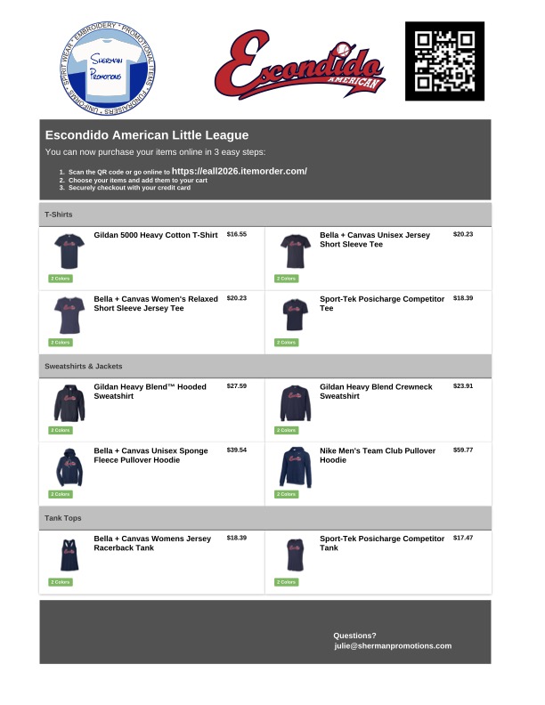 Spirit Wear Questions?? Please contact John at [email protected]